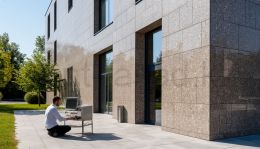 На этапе КМ основным фокусом является расчет нагрузок и выбор сверхпрочной подсистемы. Вес каменных плит (особенно гранита) может достигать 60-80 кг/м12;, что требует значительного усиления кронштейнов и направляющих. Расчет включает в себя собственный вес облицовки, ветровые нагрузки (которые, помимо "прижимающих", могут быть и "отрывающие", действующие на подъем плиты), а также сейсмические нагрузки в соответствующих регионах. Шаг вертикальных направляющих (часто это усиленные Т-образные или П-образные профили из нержавеющей стали или горячеоцинкованной стали большой толщины) значительно уменьшается по сравнению с другими материалами, чтобы обеспечить надежную поддержку каждой плите. Выбор материала подсистемы здесь критичен: предпочтение отдается нержавеющей стали из-за ее коррозионной стойкости и высокой прочности, что особенно важно для долговечности и безопасности. Алюминиевые сплавы используются реже и только для более легких видов камня при условии тщательного расчета.